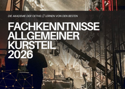 Fachkenntnisse fachlicher Teil Bühnentechnik buchbar! Datum 13. – 23. 04. 2026 Anmeldungen sind ab sofort über unsere Hompage möglich: FK-V fachlicher Teil Bühnentechnik – Akademie der OETHG Uhrzeit 08:30 bis 17:30 bzw. 18:30 Uhr Seminarort Schulungszentrum der Akademie der OETHG, 1170 Wien, Taubergasse 60 Prüfung: Prüfungsvorbereitung: 11.05.2026 schriftliche Prüfung: 12.05.2026 mündliche Prüfung: 13.05.2026